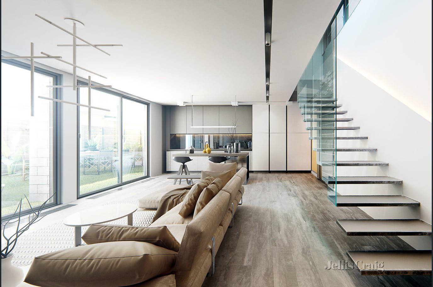 • Tailored Interiors: Sun-drenched, open-plan layouts featuring soaring ceilings and premium finishes—from marble kitchen islands to custom-integrated cabinetry.